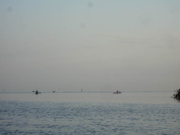 As we are on the water by 6AM this morning, there is an odd quietness to the estuary today. I love the sounds you hear in the kayak and this morning's sound is hundreds of thousands of glass minnows all making noise as they break water together. There are not many days where you get a full east wind in Florida and the water on the "outside" of Tampa Bay is like glass.